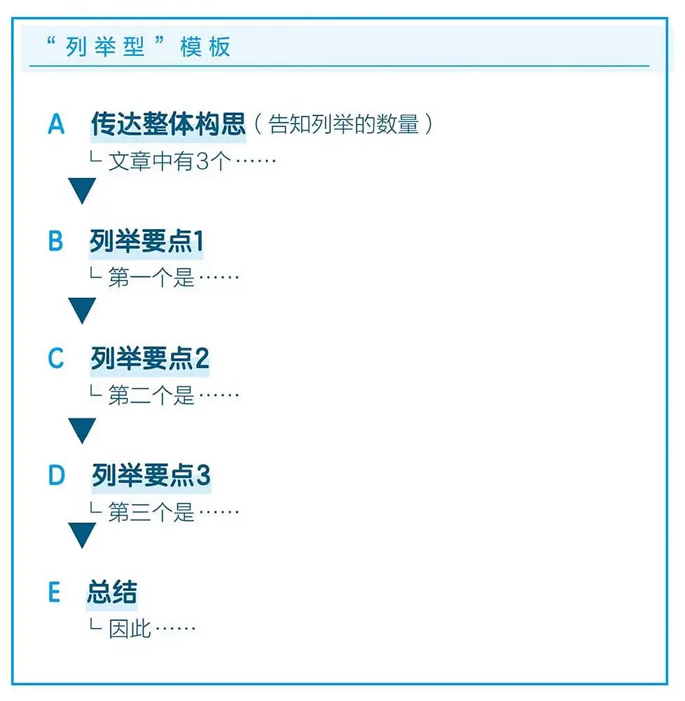 - 写作场景:当你想要阐述多条信息时,【列举法】模板十分有用。