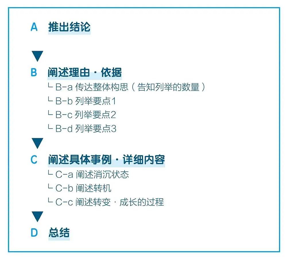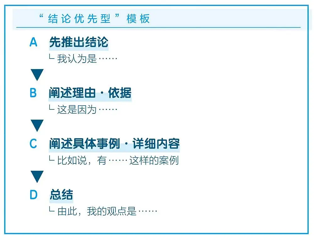 - 外部大框架使用【结论优先法】(结论-理由依据-案例-总结);