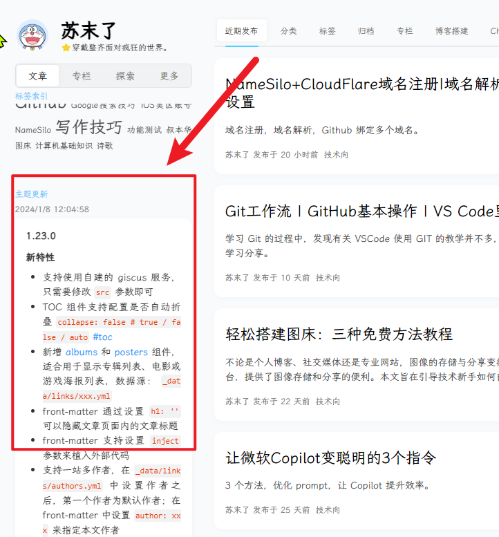 侧边栏时间线新增 假设我们需要在主页和专栏的文章内页侧边栏处,分别新增主题更新进度的时间线,需要三步。